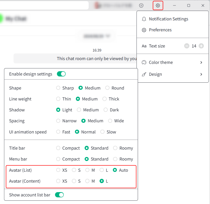 “Avatar (list screen)” and “Avatar (posting mask)” have been added to the design settings that can be configured from the gear icon in the upper right corner of the dejiren AI Client screen.