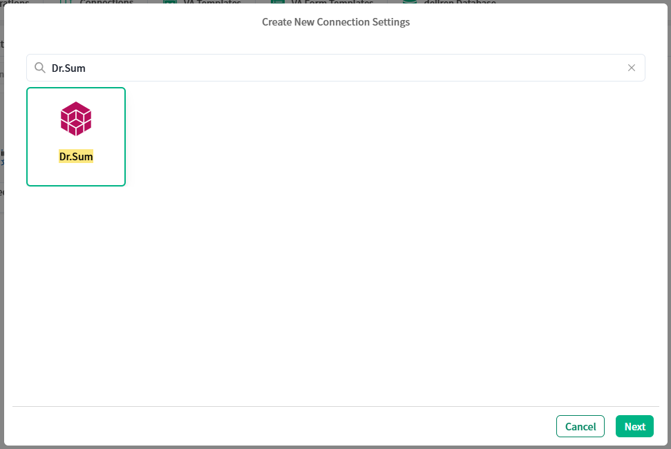 4. In the Create New Connection Settings dialog,click Dr.Sum and click Next.